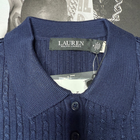 NWT Lauren Cable-Knit Polo Sweater Navy Medium Ralph Lauren