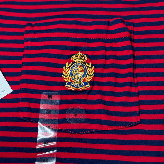 NWT Polo Ralph Lauren Striped Classic Fit Crest Polo Shirt Medium Red