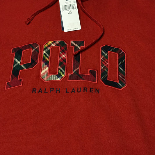 NWT Polo Ralph Lauren Plaid-Logo Fleece Hoodie Red XLT