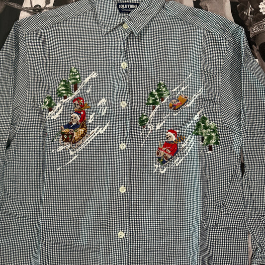 Vintage 80's Skiing Bears Blouse by Solutions Casualwear size Small