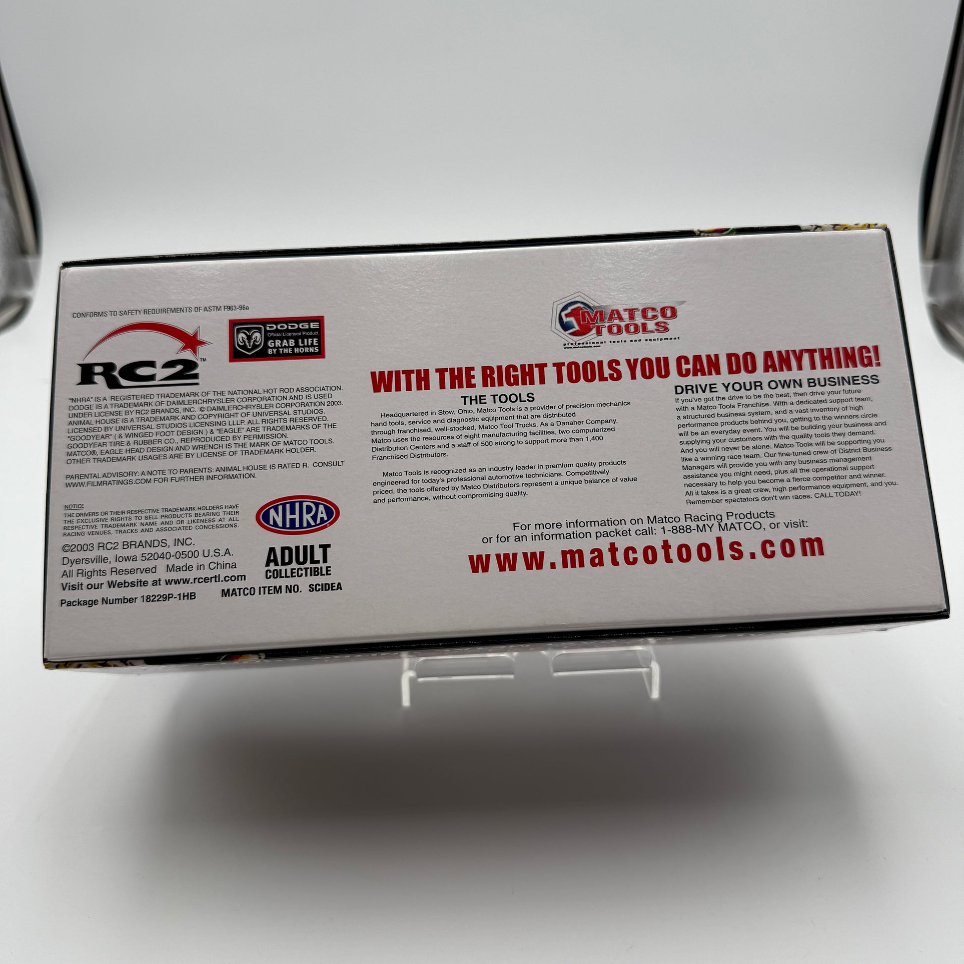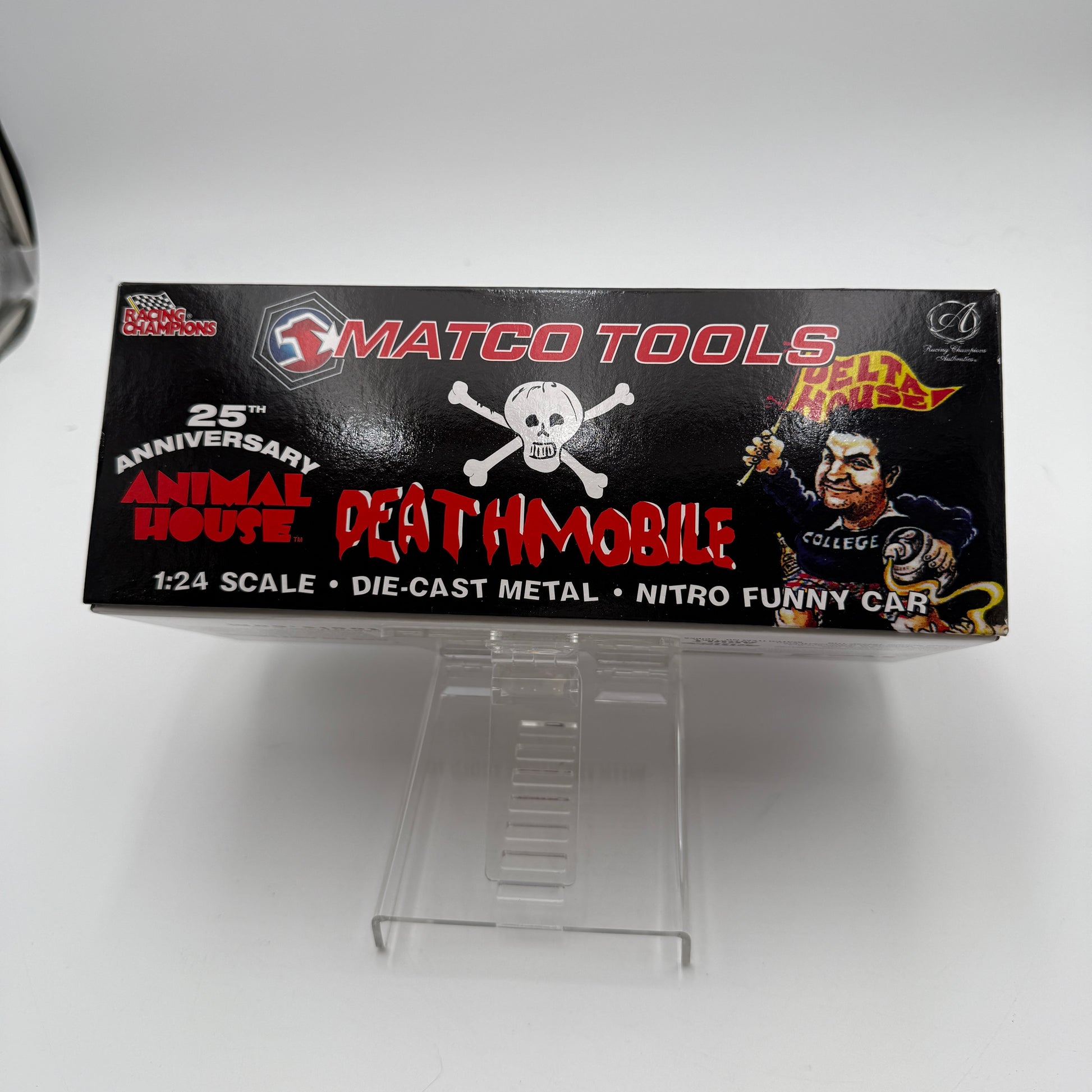 The car features vibrant multi-colored designs that capture the essence of both the NHRA racing world and the enduring legacy of Animal House. Ideal for collectors and fans alike, this model is a must-have for your display or a fantastic gift for the racing enthusiast in your life.