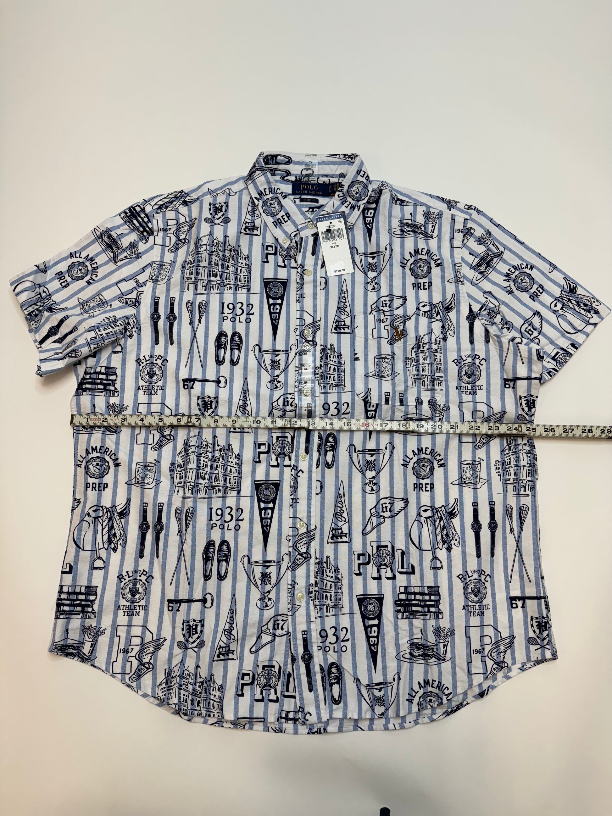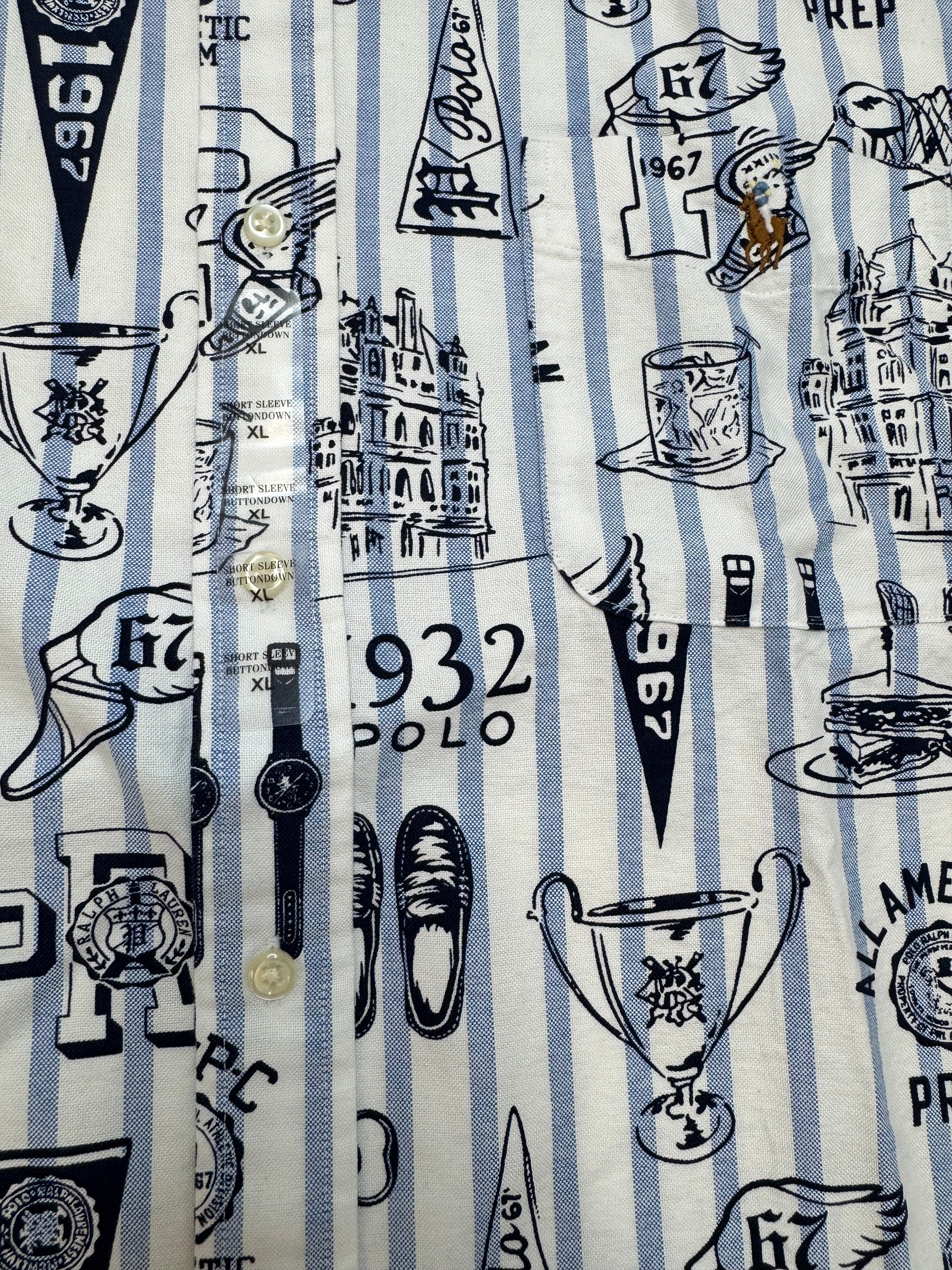 NWT Polo Ralph Lauren Classic Fit Striped Oxford Graphic Short Sleeve Shirt XL