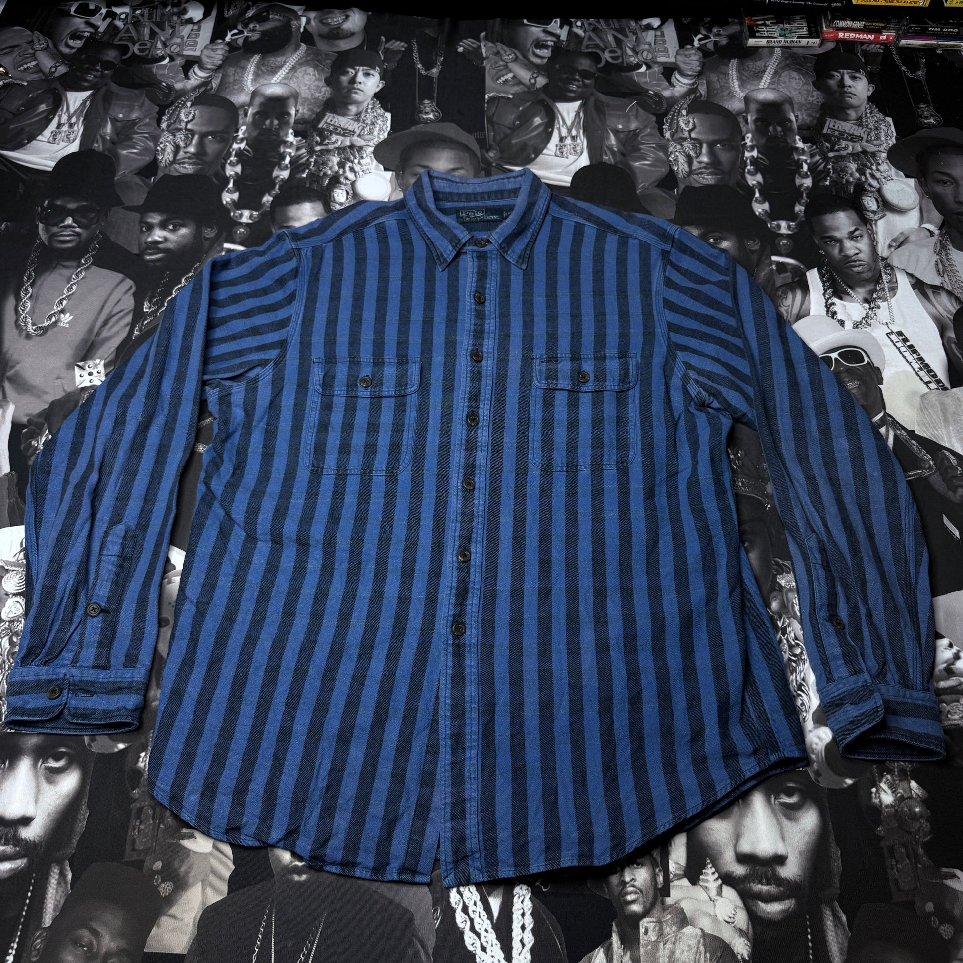 Vintage 90's Polo Ralph Lauren Double Pocket Striped Button Up Shirt XL