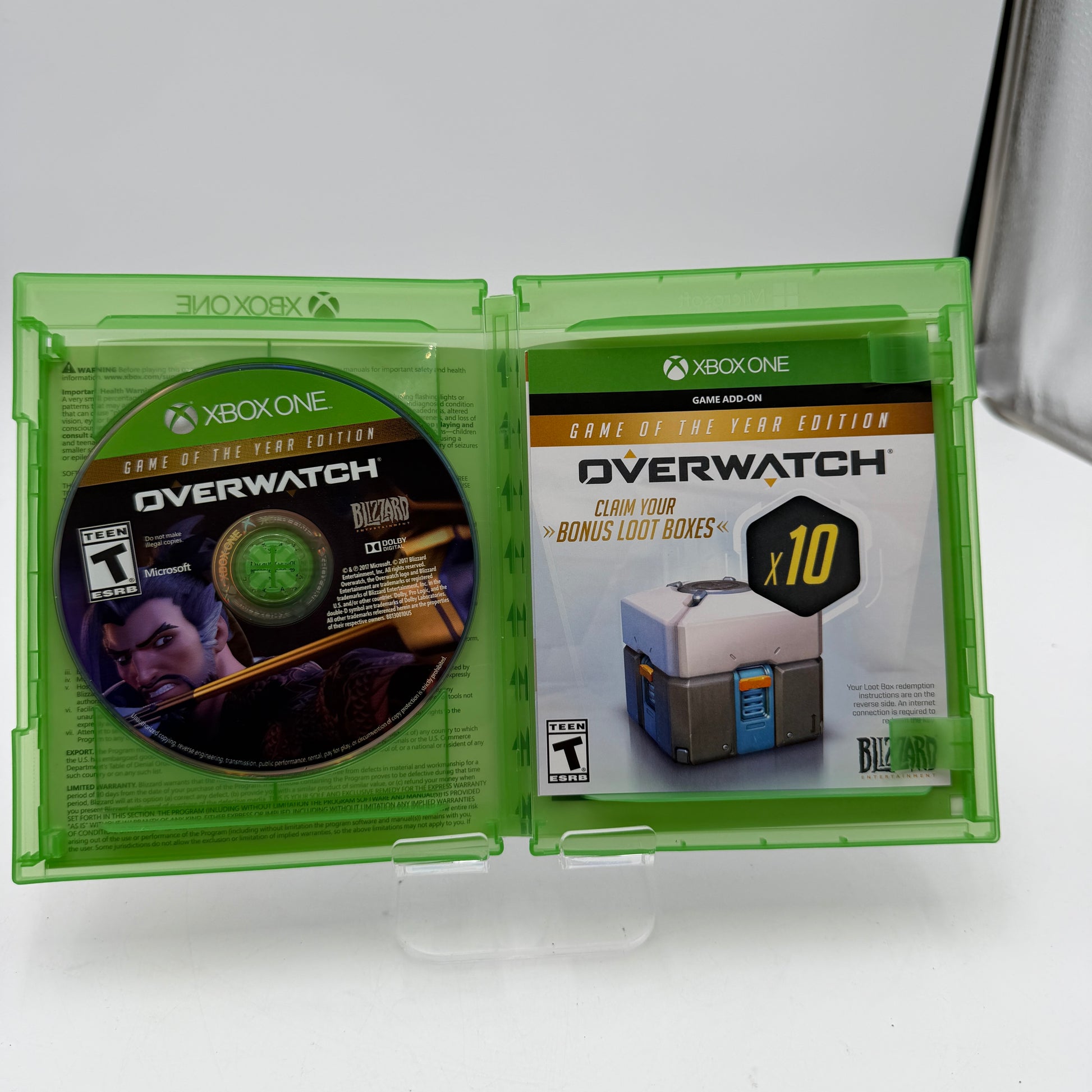 Experience the excitement of Overwatch with the Game of the Year Edition for Xbox One. This critically acclaimed team-based shooter brings fast-paced action and a variety of characters to life, making it a perfect addition to any gamer's collection. This used copy comes complete with the original box, making it an excellent choice for collectors. The game has been tested and works great, ensuring you enjoy hours of engaging gameplay. The case and disc show no noticeable scratches and do not affect functionality. Ideal for both casual and competitive players, this edition offers new cosmetic items, skins, and additional modes.